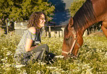 Mon objectif : fournir les outils nécessaires pour aider les chevaux à se sentir apaisés et confiant, favorisant ainsi une relation harmonieuse entre l'homme et le cheval.